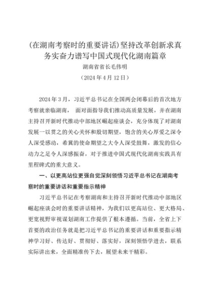 署名文章:20240412(在湖南考察时的重要讲话)坚持改革创新求真务实奋力谱写中国式现代化湖南篇章——湖南省省长毛伟明