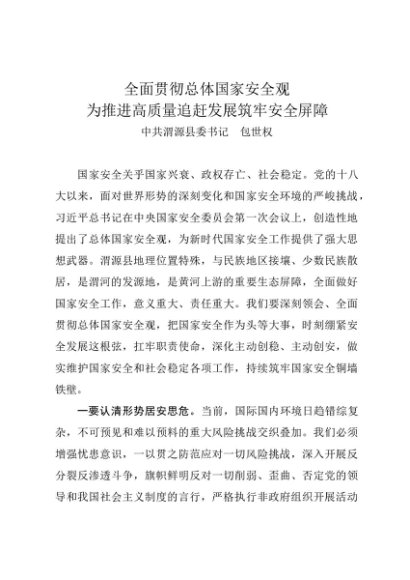 / 署名文章:20240411全面贯彻总体国家安全观 为推进高质量追赶发展筑牢安全屏障——中共渭源县委书记 包世权
