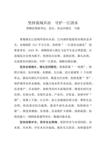 / 署名文章:20240409坚持流域共治 守护一江清水——黄梅县委副书记、县长 马梁