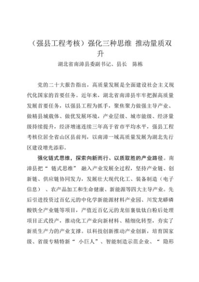 署名文章:20240404(强县工程考核)强化三种思维 推动量质双升——湖北省南漳县委副书记、县长 陈栋