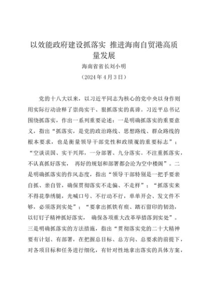 署名文章:20240403以效能政府建设抓落实 推进海南自贸港高质量发展——海南省省长刘小明