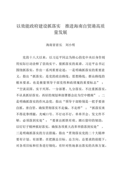 署名文章:20240403以效能政府建设抓落实 推进海南自贸港高质量发展——海南省省长 刘小明