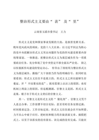 / 署名文章:20240401整治形式主义要由“表”及“里”——云南省玉溪市委书记 王力