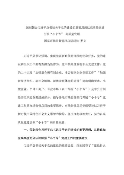 署名文章:20240330深刻领会习近平总书记关于党的建设的重要思想 以高质量党建引领“小个专” 高质量发展——国家市场监督管理总局局长 罗文