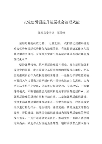 / 署名文章:20240326(党建工作 基层治理)以党建引领提升基层社会治理效能——陇西县委书记 祁雪峰