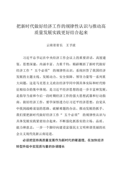 署名文章:20240325(落实中央经济工作会议精神)把新时代做好经济工作的规律性认识与推动高质量发展实践更好结合起来——云南省省长 王予波