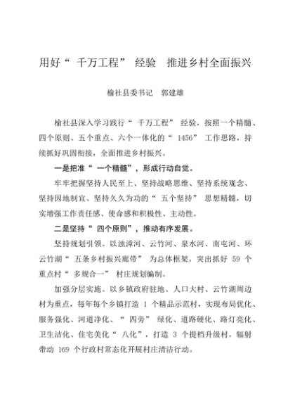 / 署名文章:20240319(千万工程 乡村振兴)用好“ 千万工程” 经验 推进乡村全面振兴——榆社县委书记 郭建雄