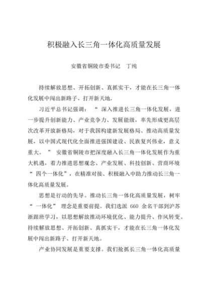 / 署名文章:20240319(区域经济)积极融入长三角一体化高质量发展——铜陵市委书记 丁纯