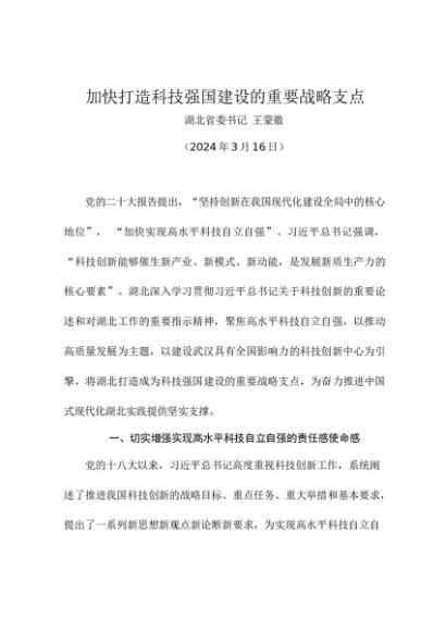 署名文章:20240316加快打造科技强国建设的重要战略支点——湖北省委书记 王蒙徽