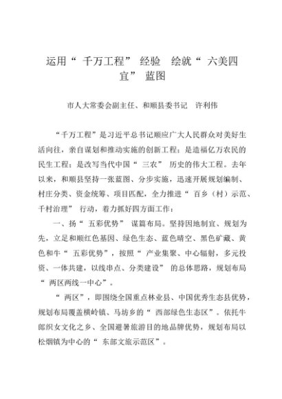 / 署名文章:20240314(千万工程)运用千万工程经验 绘就六美四宜蓝图——和顺县委书记 许利伟