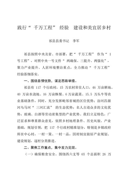 / 署名文章:20240314(千万工程)践行 千万工程 经验 建设和美宜居乡村——祁县县委书记 李军