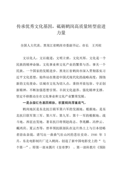 署名文章:20240315(文旅工作)传承优秀文化基因,砥砺鹤岗高质量转型前进力量——鹤岗市长 王兴柱