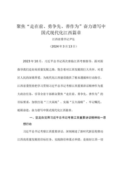 / 署名文章:20240313聚焦“走在前、勇争先、善作为”奋力谱写中国式现代化江西篇章——江西省委书记尹弘