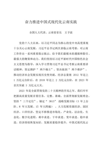 / 署名文章:20240309(两会专刊)奋力推进中国式现代化云南实践——云南省省长 王予波