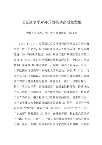 署名文章:20240311(两会专刊)以更高水平对外开放推动高质量发展——宁波市市长 汤飞帆