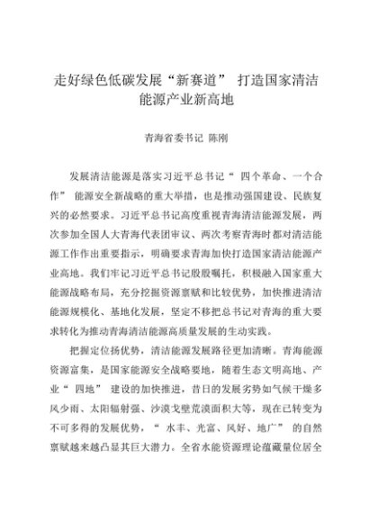 / 署名文章:20240310(两会专刊)走好绿色低碳发展“新赛道” 打造国家清洁能源产业新高地——青海省委书记 陈刚