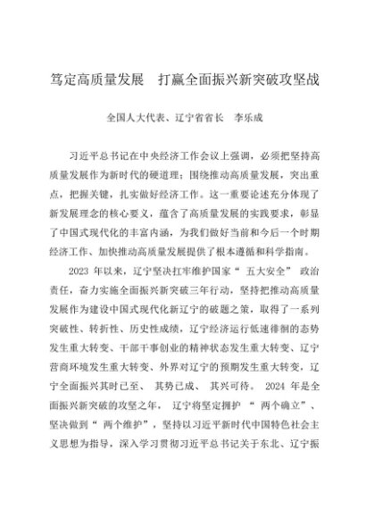 署名文章:20240308(两会专刊)笃定高质量发展 打赢全面振兴新突破攻坚战——辽宁省省长 李乐成