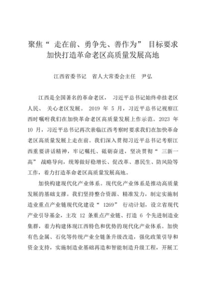 署名文章:20240306(两会专刊)聚焦“走在前、勇争先、善作为”目标要求 加快打造革命老区高质量发展高地——江西省委书记 尹弘