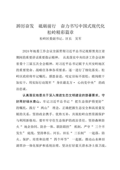 / 署名文章:20240306(视察黑龙江重要讲话)踔厉奋发 砥砺前行 奋力书写中国式现代化松岭精彩篇章——松岭区长 吴军