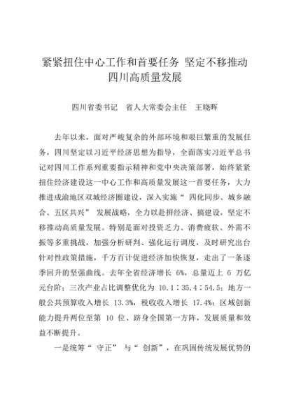 署名文章:20240307(两会专刊)紧紧扭住中心工作和首要任务 坚定不移推动四川高质量发展——四川省委书记 王晓晖