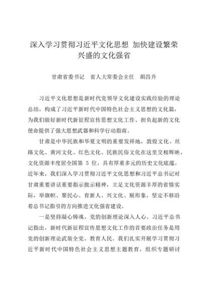 / 署名文章:20240307(两会专刊)深入学习贯彻习近平文化思想 加快建设繁荣兴盛的文化强省——甘肃省委书记 胡昌升