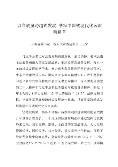 / 署名文章:20240306(两会专刊)以高质量跨越式发展 书写中国式现代化云南新篇章——云南省委书记 王宁
