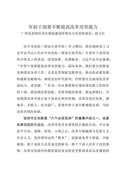 / 署名文章:20240305(青干班重要指示)年轻干部要不断提高改革攻坚能力——广西北部湾经济区规划建设管理办公室副主任