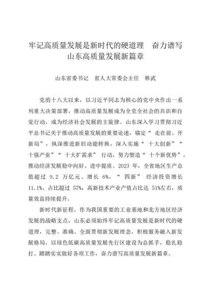 署名文章:20240305(两会专刊)牢记高质量发展是新时代的硬道理 奋力谱写山东高质量发展新篇章——山东省委书记 林武