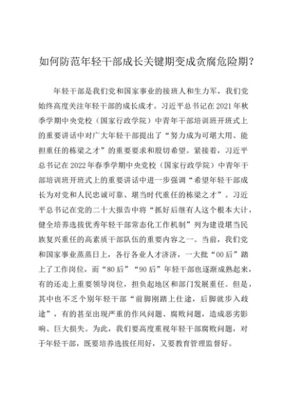 / 署名文章:20240305(青干班重要指示)如何防范年轻干部成长关键期变成贪腐危险期?
