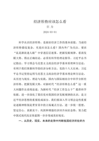 / 署名文章:20240301(经济思想)当前我国经济形势应该怎么看