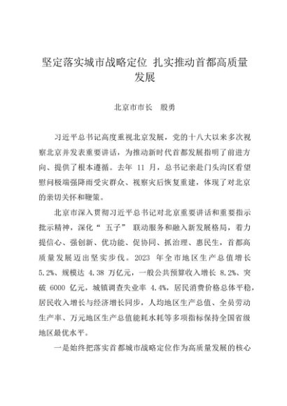 署名文章:20240304(两会专刊)坚定落实城市战略定位 扎实推动首都高质量发展——北京市市长 殷勇