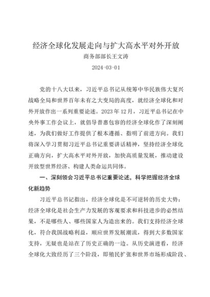 / 署名文章:20240301(经济思想)经济全球化发展走向与扩大高水平对外开放——商务部部长王文涛