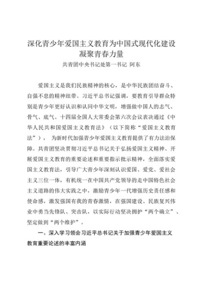 署名文章:20240229深化青少年爱国主义教育为中国式现代化建设凝聚青春力量——共青团中央书记处第一书记 阿东