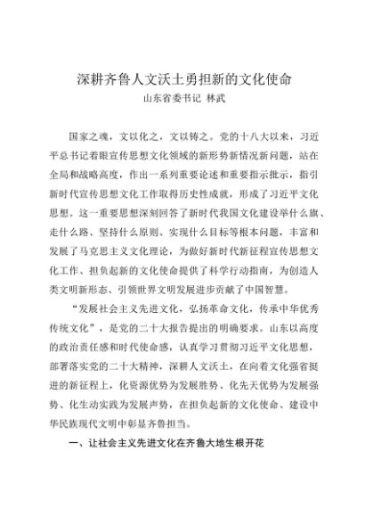 / 署名文章:20240229深耕齐鲁人文沃土勇担新的文化使命——山东省委书记 林武