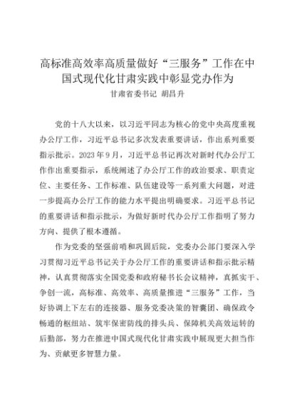 署名文章:20240229高标准高效率高质量做好“三服务”工作在中国式现代化甘肃实践中彰显党办作为——甘肃省委书记 胡昌升
