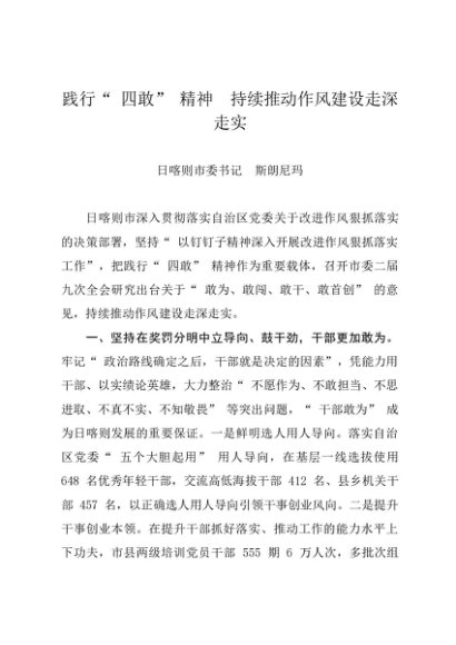 / 署名文章:20240220(作风建设)践行四敢精神 持续推动作风建设走深走实——日喀则市委书记