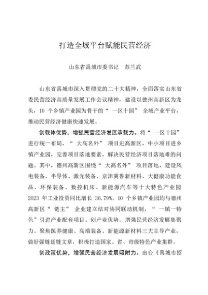 / 署名文章:20240226(民营经济)打造全域平台赋能民营经济——禹城市委书记