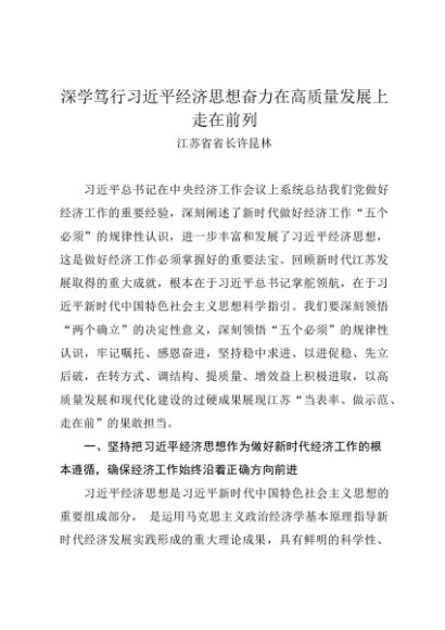 署名文章:20240130深学笃行习近平经济思想奋力在高质量发展上走在前列——江苏省省长许昆林