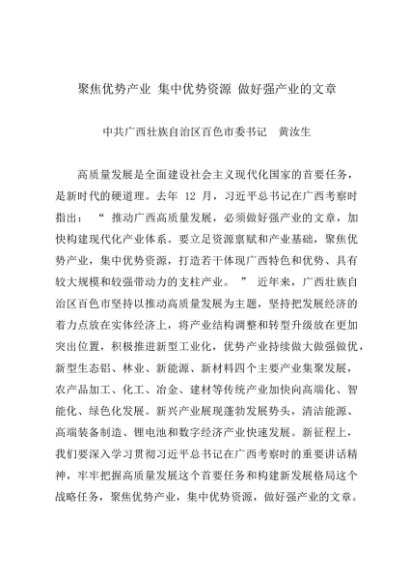 / 署名文章:20240207(高质量发展)聚焦优势产业 集中优势资源 做好强产业的文章——百色市委书记