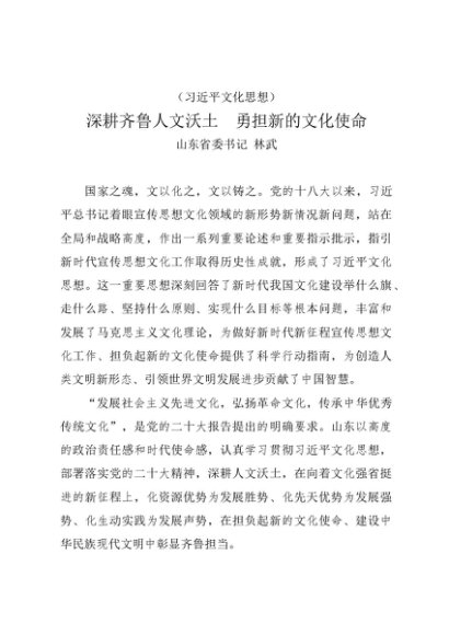 署名文章:20240218(习近平文化思想)深耕齐鲁人文沃土、勇担新的文化使命——山东省委书记 林武