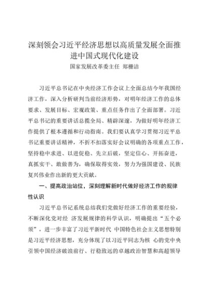 / 署名文章:20231230深刻领会习近平经济思想以高质量发展全面推进中国式现代化建设——国家发展改革委主任 郑栅洁
