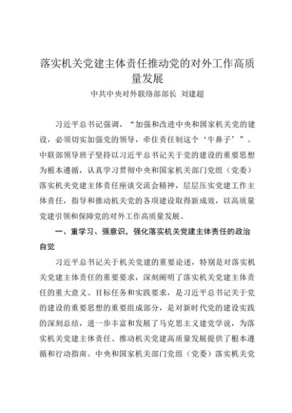 署名文章:20231230落实机关党建主体责任推动党的对外工作高质量发展——中央对外联络部部长 刘建超