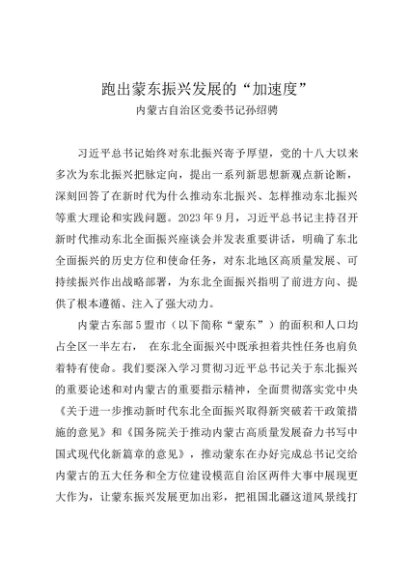 / 署名文章:20231230跑出蒙东振兴发展的“加速度”——内蒙古自治区党委书记孙绍骋
