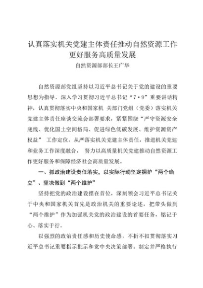 / 署名文章:20231230认真落实机关党建主体责任推动自然资源工作更好服务高质量发展——自然资源部部长王广华