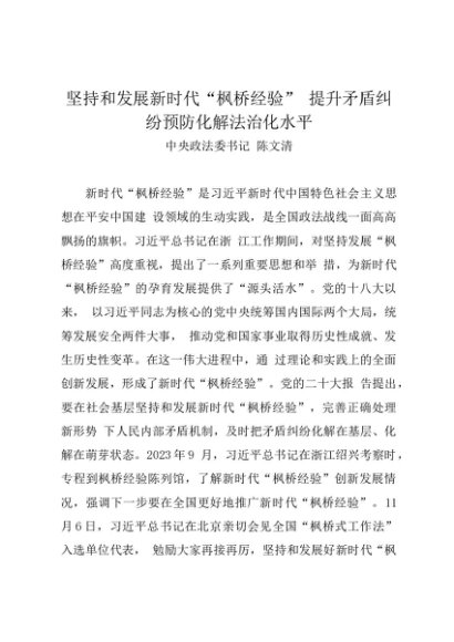 / 署名文章:20231230坚持和发展新时代“枫桥经验” 提升矛盾纠纷预防化解法治化水平——中央政法委书记 陈文清