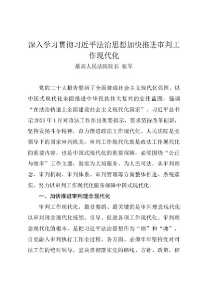 / 署名文章:20231230深入学习贯彻习近平法治思想加快推进审判工作现代化——最高人民法院院长 张军