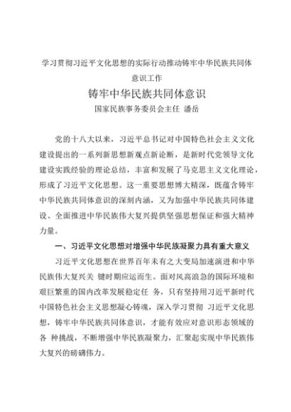 / 署名文章:20231230学习贯彻习近平文化思想的实际行动推动铸牢中华民族共同体意识工作——国家民族事务委员会主任 潘岳