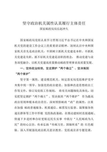 署名文章:20231230坚守政治机关属性认真履行主体责任——国家邮政局局长赵冲久