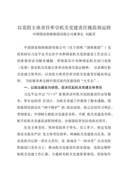 / 署名文章:20231230以党组主体责任牵引机关党建责任链高效运转——中国国家铁路集团有限公司董事长 刘振芳