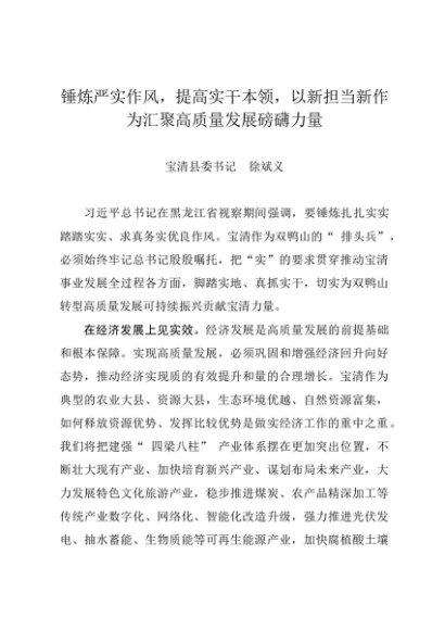 署名文章:20231228(总书记视察黑龙江讲话)锤炼严实作风,提高实干本领,汇聚高质量发展磅礴力量——宝清县委书记徐斌义